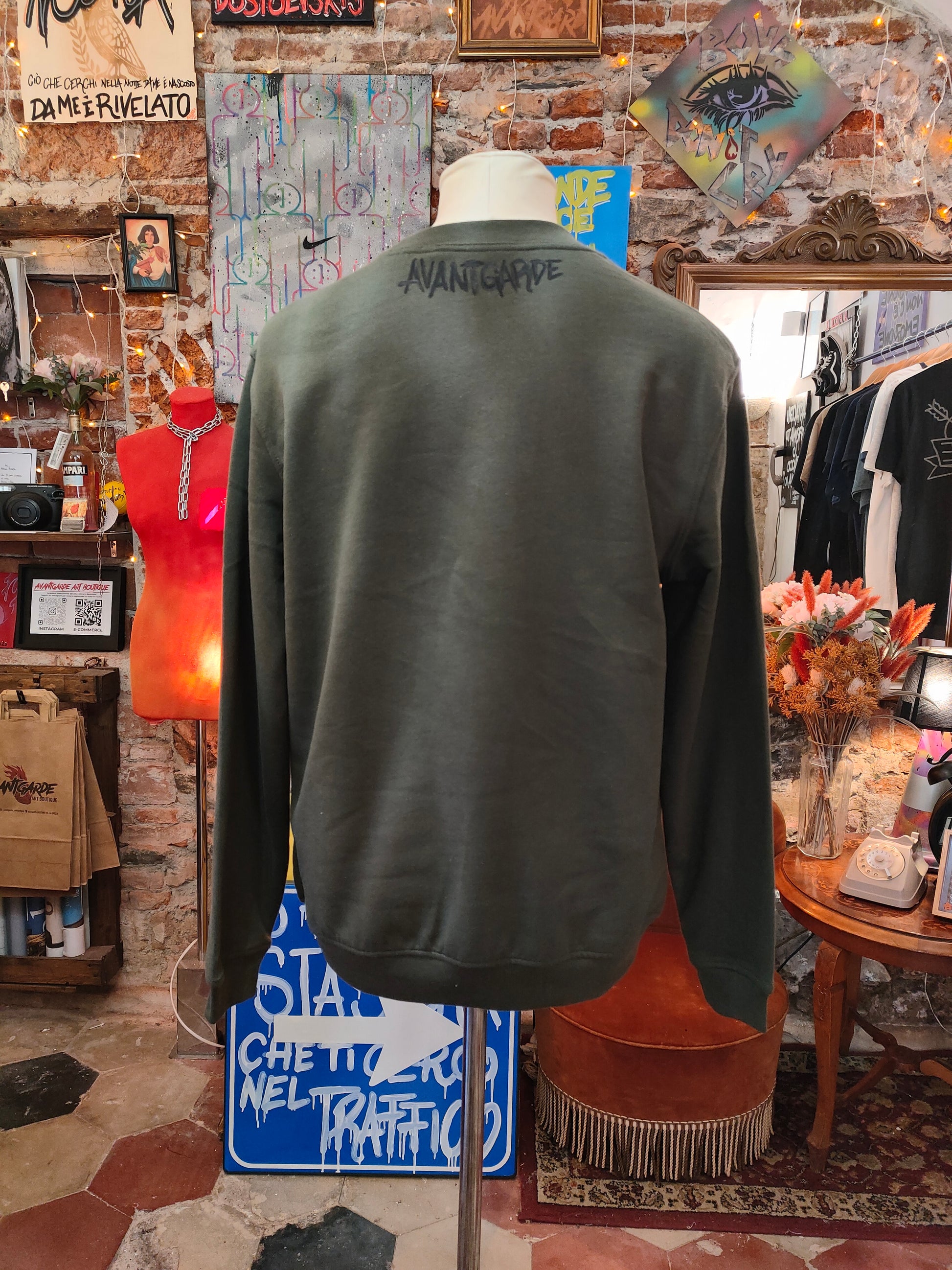Questa felpa Avantgarde è un manifesto contro la moda seriale: indossa l’unicità, scegli la ribellione creativa.